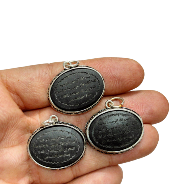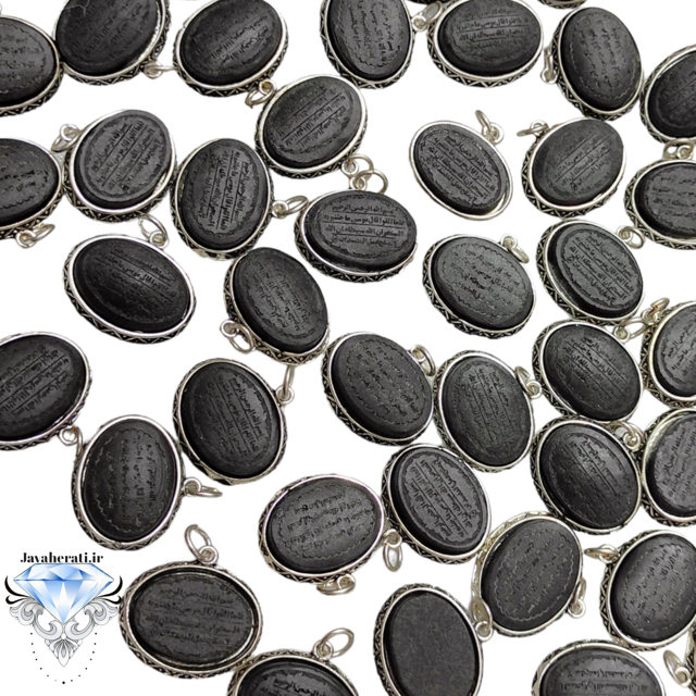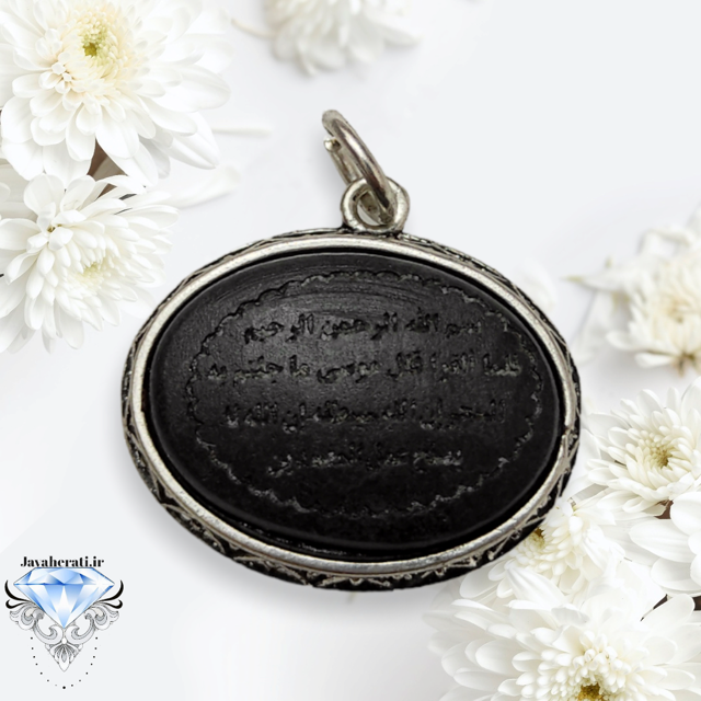 آویز سنگ عباس آباد طبیعی ومغناطیسی،حکاکی آیه 81 سوره یونس (ضمانت اصالت) اندازه 23*28میلیمتر وزن 8گرم