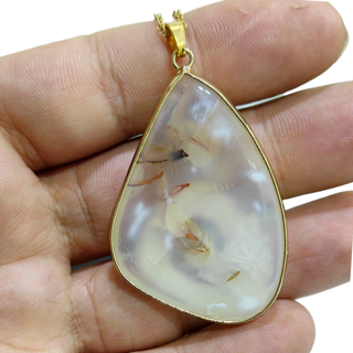 آویز عقیق سلیمانی مصور آفریقایی با قاب طلایی رنگ ثابت (ضمانت اصالت)اندازه