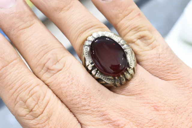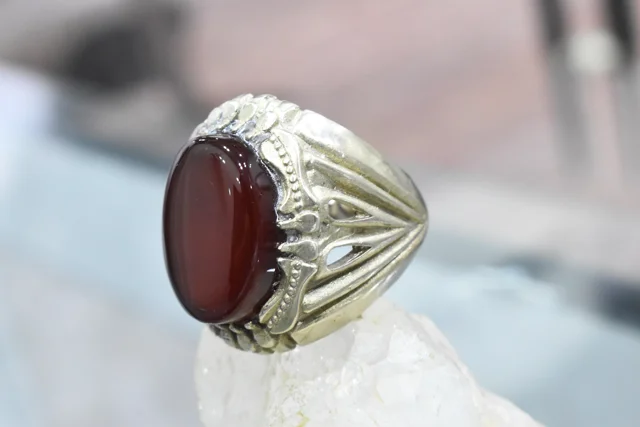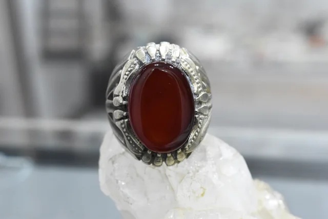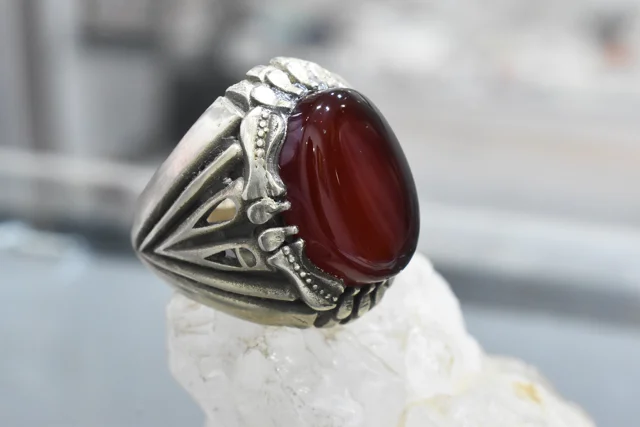 -سایز63 با انگشتر مردانه عقیق سرخ خراسان، جواهری از دل تاریخ و طبیعت را به