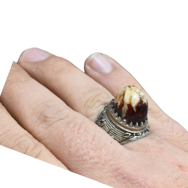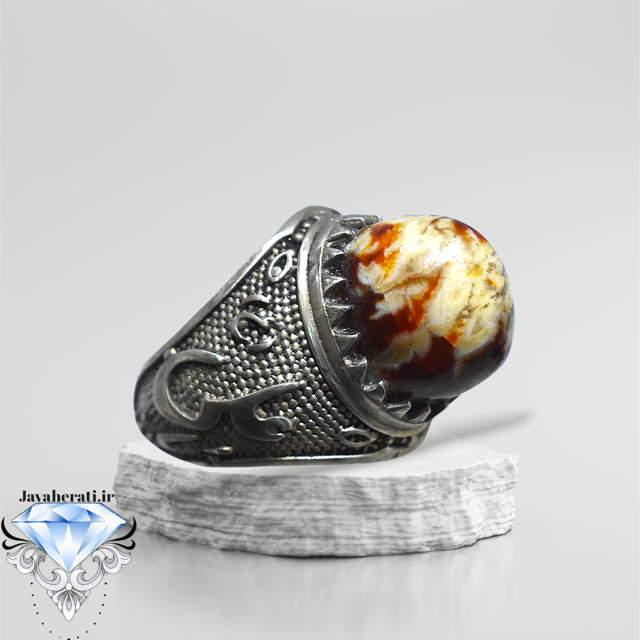 رنگ ثابت مشابه نقره -سایز64 با انگشتر مردانه عقیق سرخ ، به استایل خود