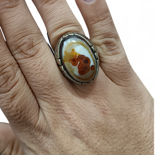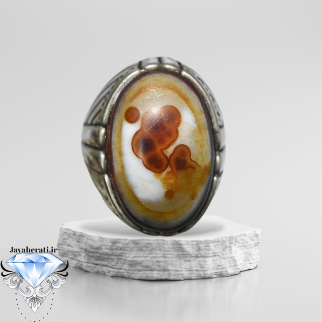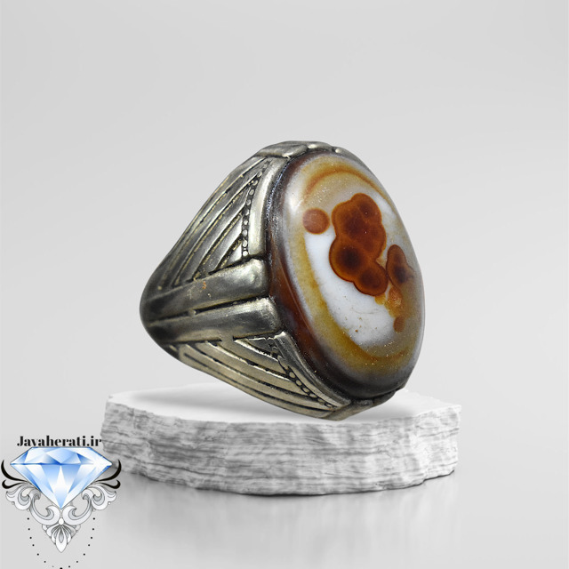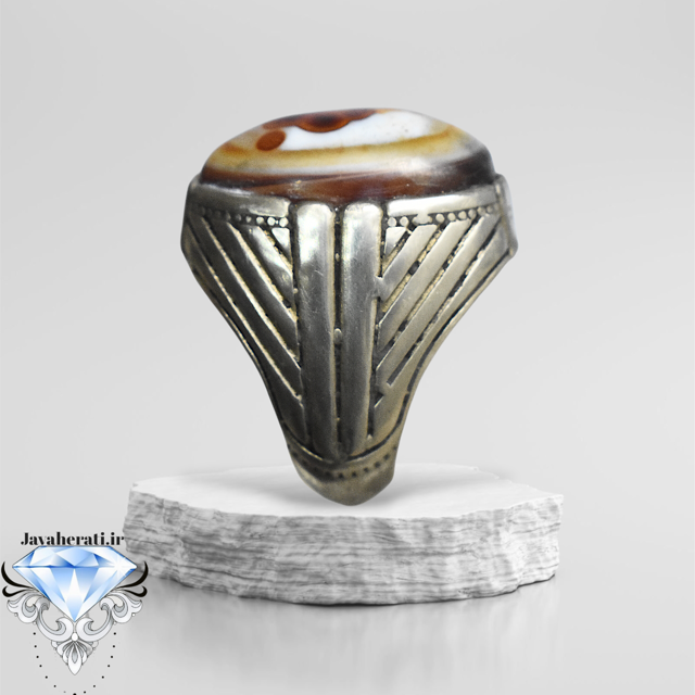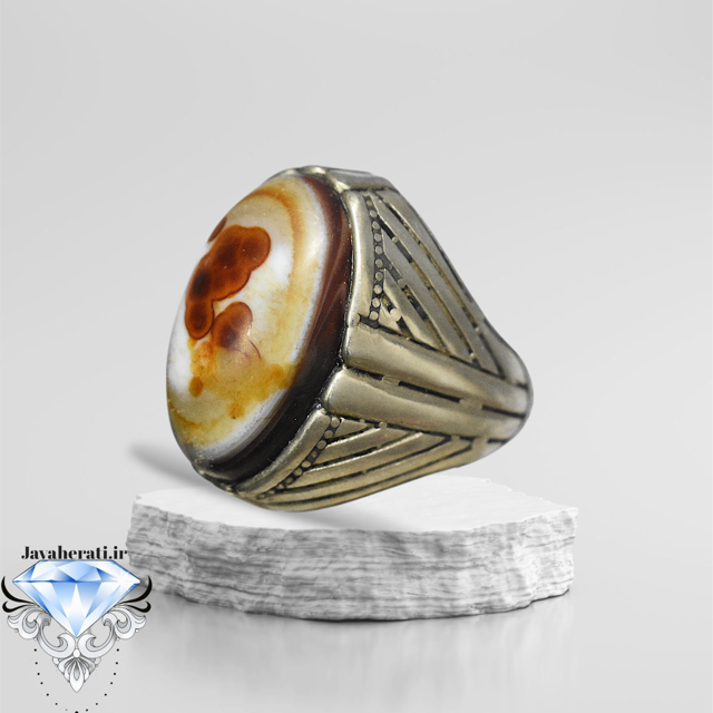 اصل)-رکاب آلیاژ رنگ ثابت مشابه نقره -سایز62/63 با انگشتر مردانه عقیق